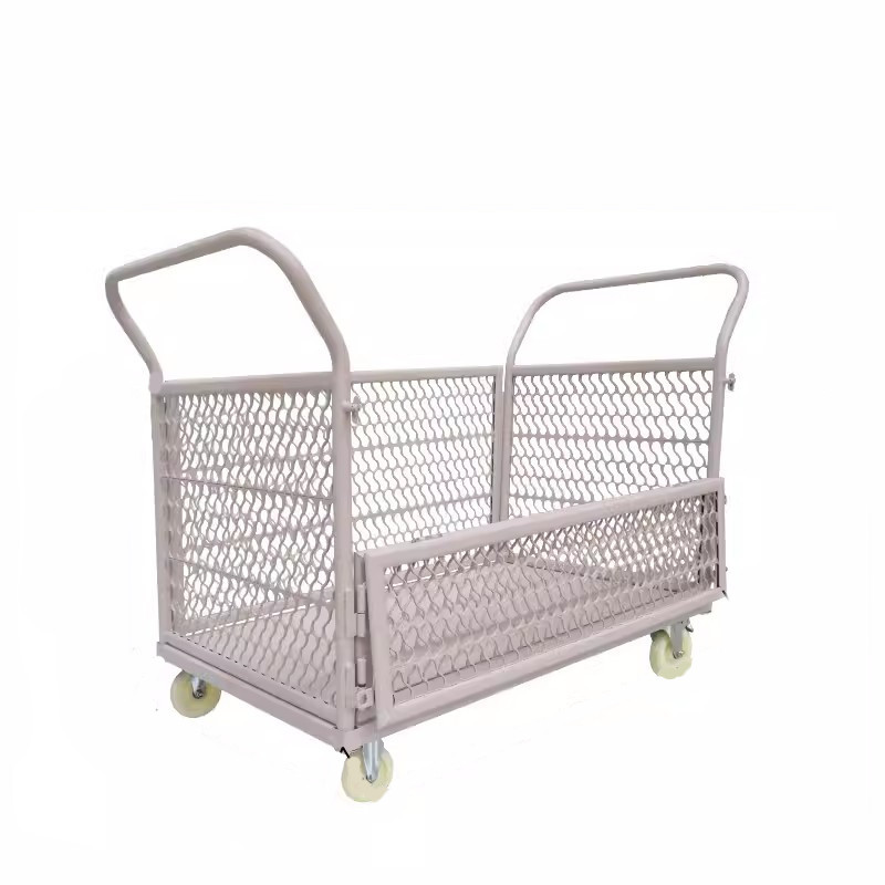 迅迈 半折叠网车灰色大号(5寸轮)拉货手推车 折叠平板搬运车 轻便仓库物流围栏车网格车间周转车