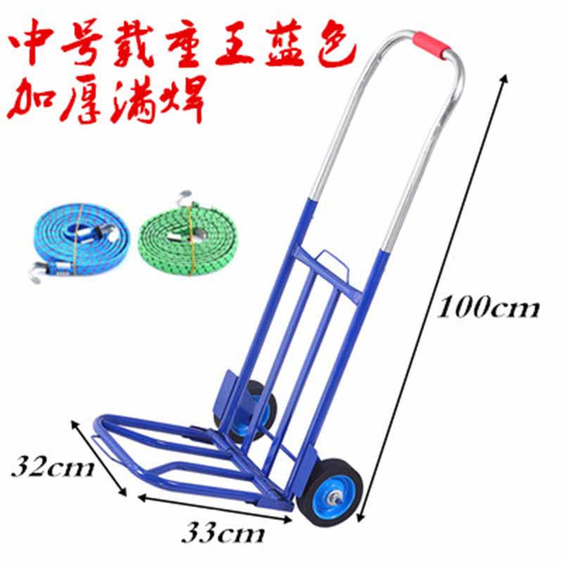 手拉车折叠便携拉货车拖车 蓝色满焊载重王橡胶轮+2绑绳