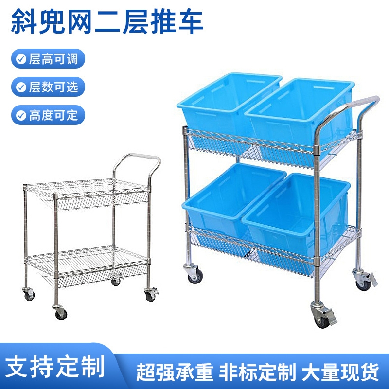 易企采 长120*宽45*高104CM无框 二层物流仓库快递分拣斜兜网推车电商斜面手推工具车