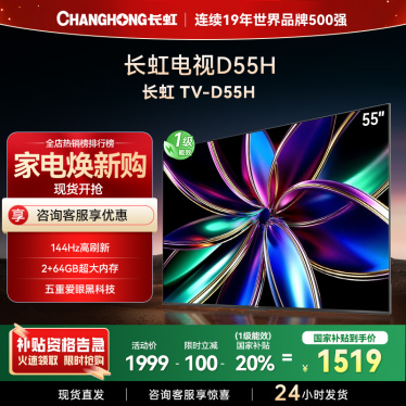 长虹55D55H 55英寸144Hz高刷新 云帆AI影像 60W峰值功率音响 超高清4K平板电视政府补贴