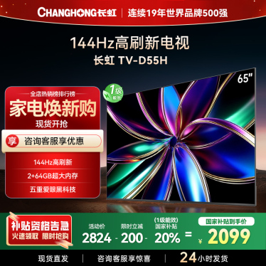 长虹65D55H 65英寸144Hz高刷新 云帆AI影像 60W峰值功率音响 超高清4K平板电视政府补贴