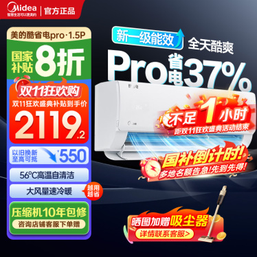 美的(Midea)空调1.5匹p酷省电Pro新一级能效变频冷暖壁挂式家用卧室智能挂机KFR-35GW N8KS1-1P