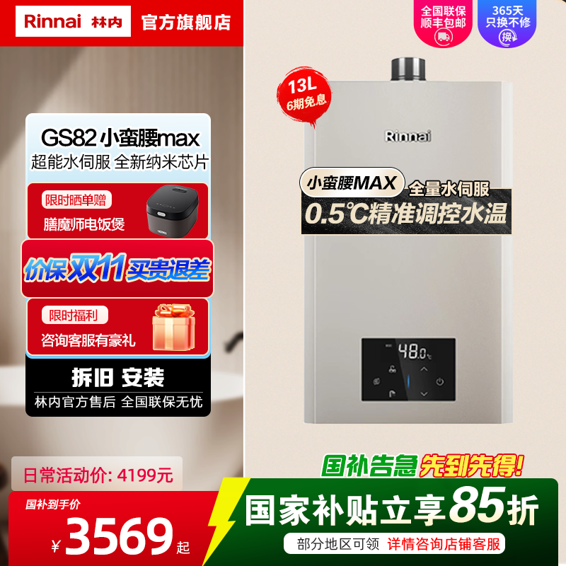 小蛮腰MAX新品0.5度精控水量伺服器13升GC62/GS82变频节能恒温家用燃气热水器