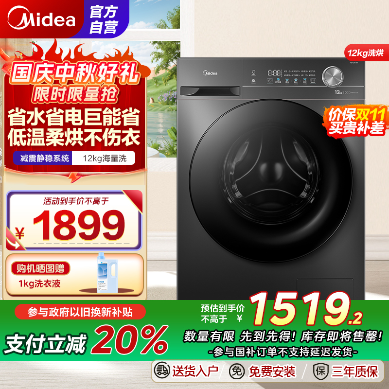美的(Midea)洗衣机滚筒全自动12公斤大容量家用1.1超高洗净比除菌净螨一级能效节能MD120V36T家电国家补贴