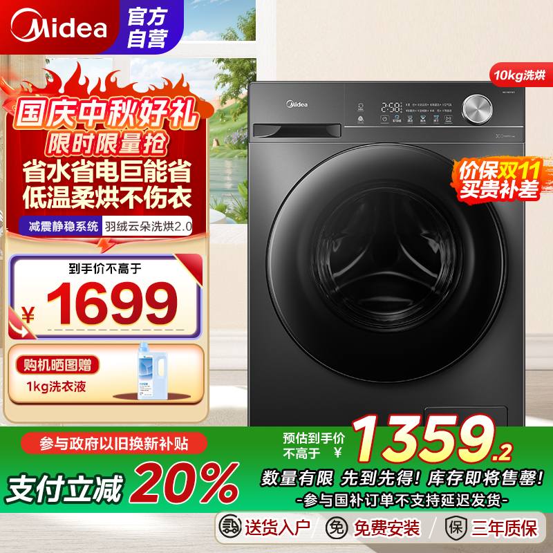 美的(Midea)滚筒洗衣机全自动家用 MD100V36T 10公斤洗烘一体 除菌净螨 节能净速 以旧换新