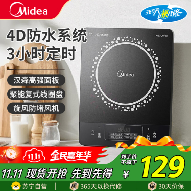 美的(Midea) 电磁炉MC-E22B23大功率2200W猛火家用智能定时多功能炒菜火锅防水铂钻玻璃面板电磁灶火锅炉