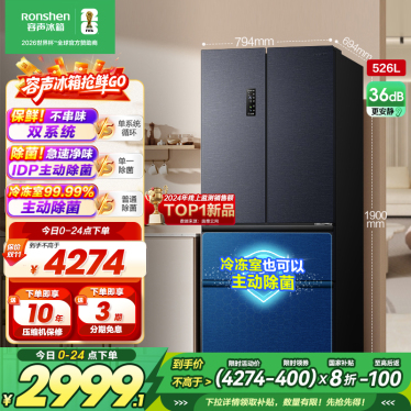 容声526升双净双系统法式多门冰箱家用风无霜变频一级能效大容量嵌入式主动除菌BCD-526WD1MPA