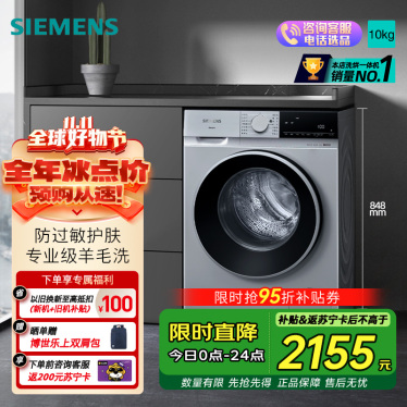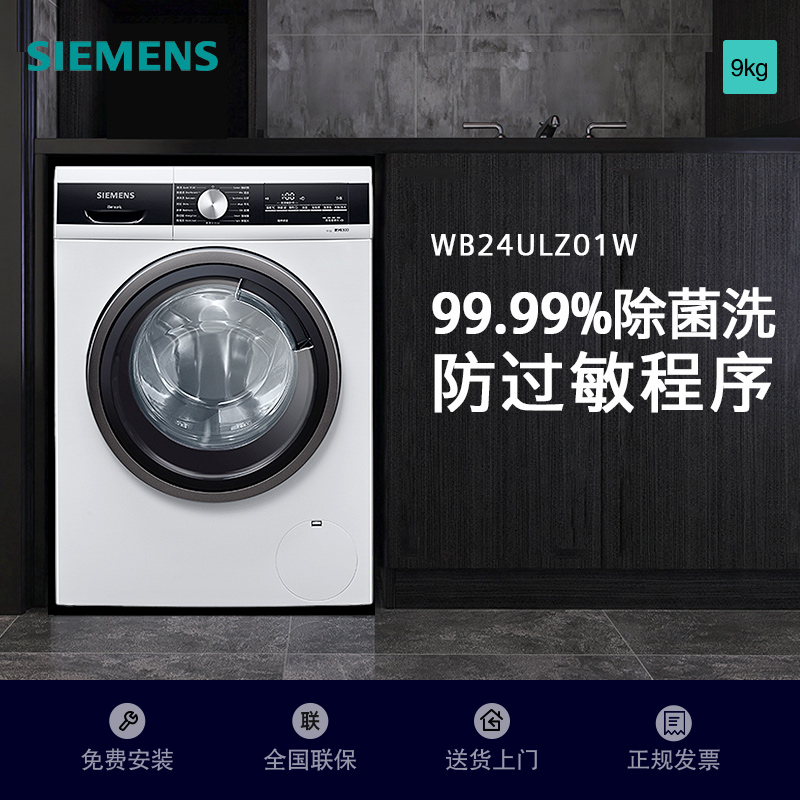 西门子 滚筒洗衣机除菌防敏护色护衣智能除渍9KG冰洗套装 WB24ULZ01W除菌除螨