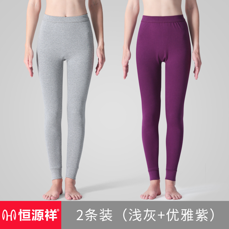 恒源祥纯棉秋裤女士保暖衬裤线裤春秋内穿夏薄款棉裤大码宽松毛裤 165/M 【纯棉抗菌】优雅紫+浅灰