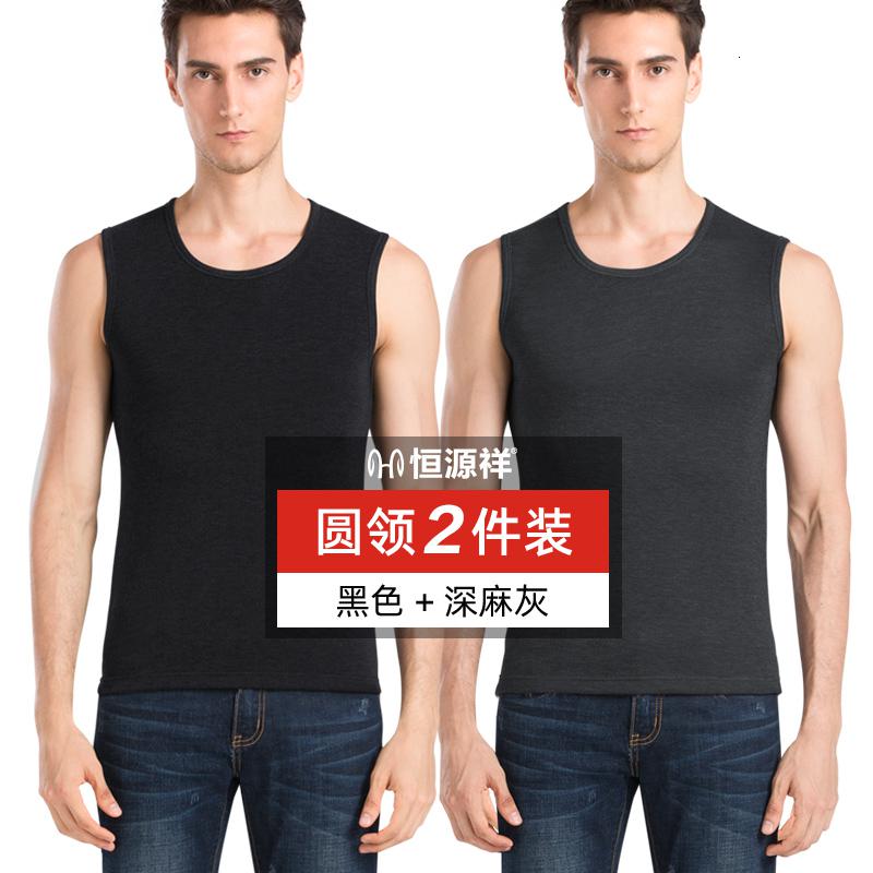 恒源祥男士保暖背心无痕加厚马甲加绒德坎肩打底衫内穿秋冬季 180 2件装-黑色+深灰-保暖护胸护背
