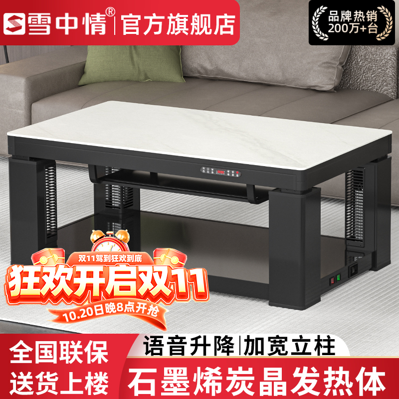 雪中情电暖桌取暖桌电暖炉烤火桌茶几一体升降电暖茶几家用客厅长方形烤火炉电炉取暖器电暖器电茶几岩板带语音控制