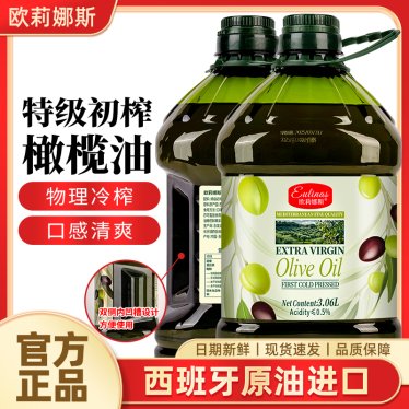 欧莉娜斯[健身推荐]100%纯特级初榨橄榄油西班牙进口1.02L 3.06L家用健康食用油 3.06L