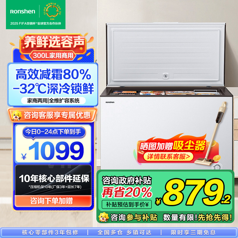 容声(Ronshen)300升家用商用卧式大冷冻柜冷藏冷冻转换大容量一级能效 国补BD/BC-300ZMSM珍珠白