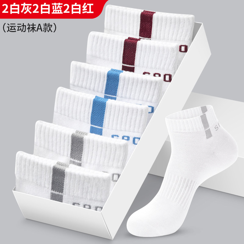 恒源祥袜子男纯棉吸汗防臭运动袜长短袜春夏季中筒全棉袜网眼男袜 1件-纯棉防臭男袜(38-44码) 平纹款-2白灰2白蓝2白红