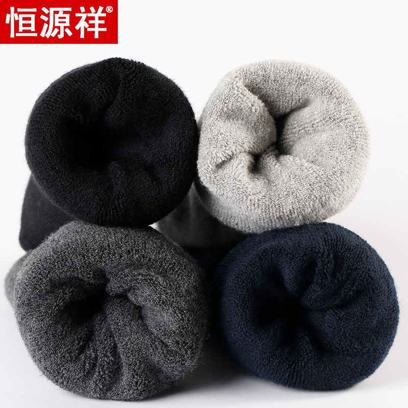 恒源祥袜子男100%纯棉秋冬季保暖中筒男袜全棉冬天加厚款男士棉袜_403 均码(100%纯棉加厚保暖) 黑色+藏青2双黑色2双藏青