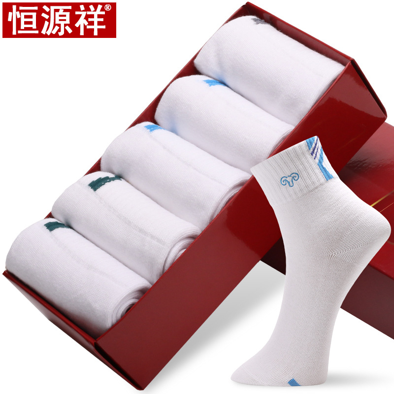 恒源祥纯棉袜子男100%棉秋冬季中筒男袜防臭吸汗运动商务男士棉袜_130 均码 白色白色5双礼盒
