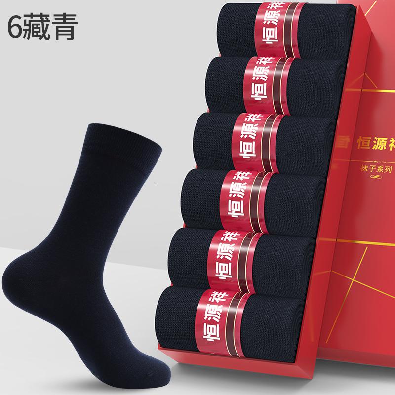 恒源祥袜子男士高筒秋冬季黑色商务长筒纯棉吸汗防臭中筒全棉男袜_404_246 1件6双-高筒男袜(38-44码) 四季款-6双藏青