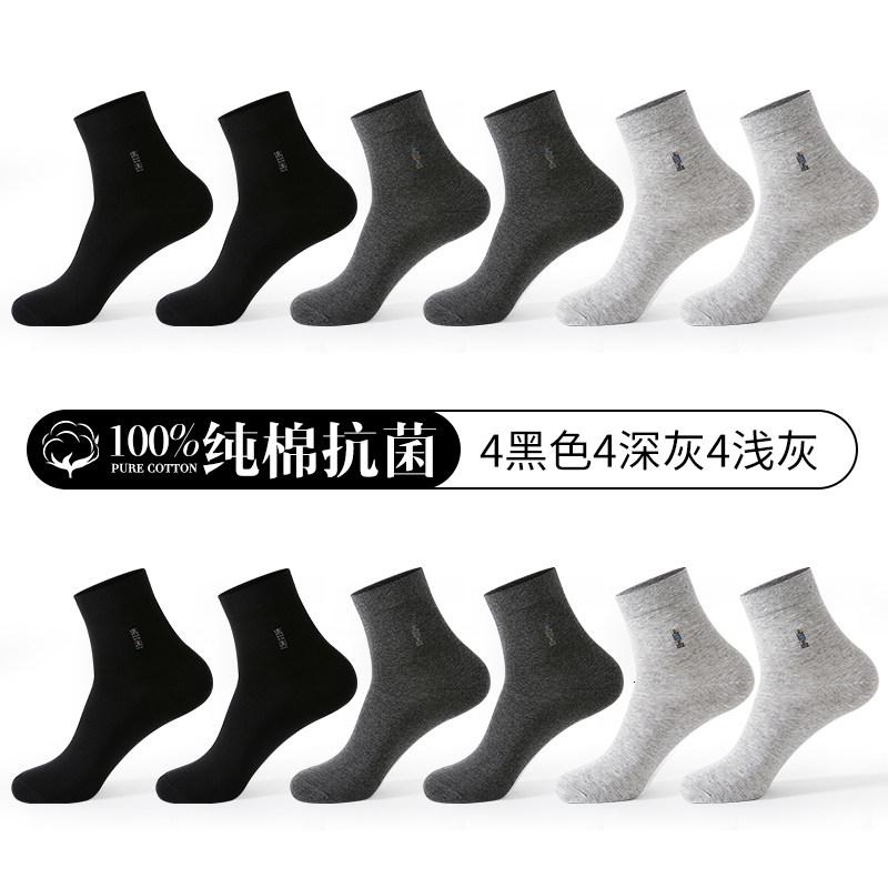 恒源祥袜子男纯棉袜夏季男士夏天薄款透气防臭吸汗全棉男袜中筒袜_490 均码 4黑色4深灰4浅灰