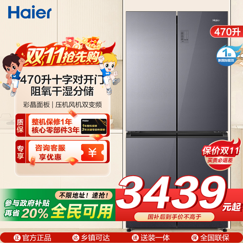 海尔(Haier)470升十字对开门嵌入冰箱 阻氧干湿分储 母婴三档变温 彩晶面板 BCD-470WGHTD5DS1