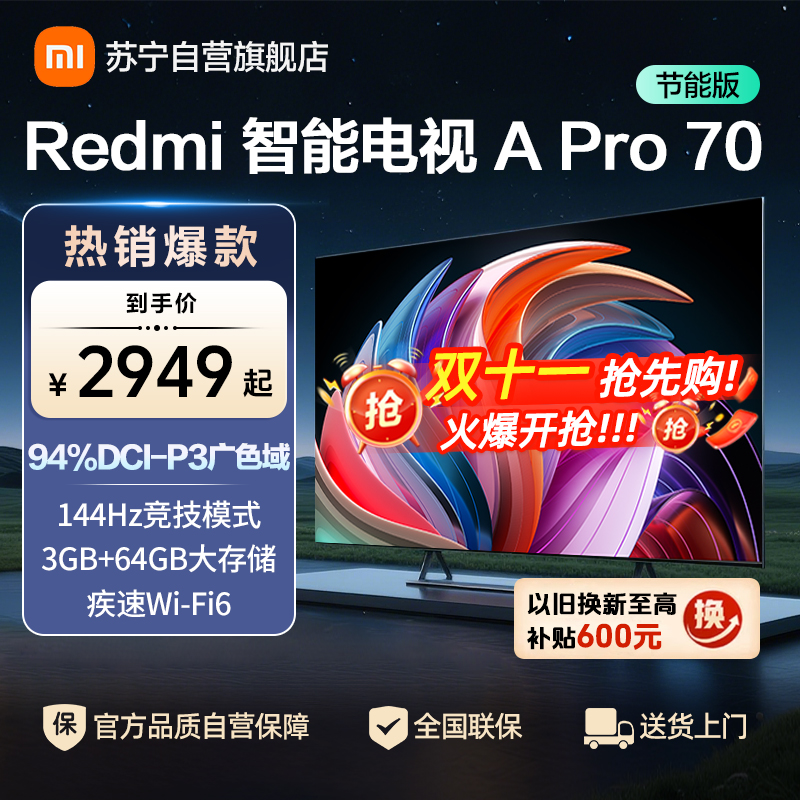 小米电视70英寸Redmi APro70节能版120Hz游戏高刷3+64G大存储MEMC运动补偿