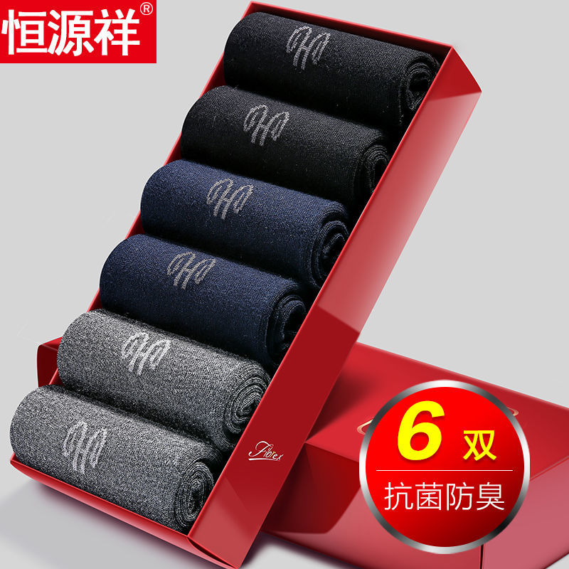 恒源祥袜子男士纯棉防臭长袜冬厚男中筒袜全棉四季加厚长筒男袜子_83 均码M(39-44码100%纯棉) 9