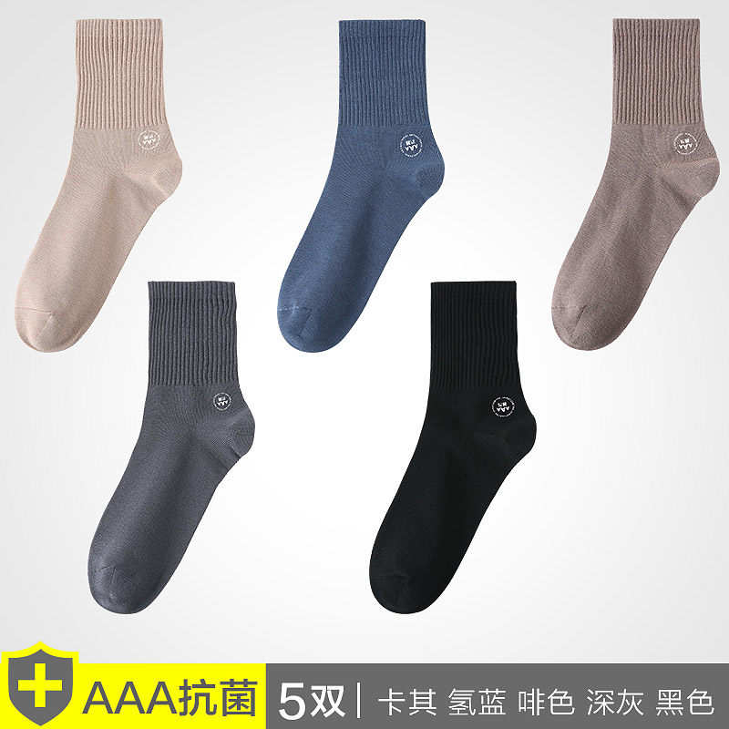 恒源祥男士袜子纯棉中筒春秋防臭吸汗透气长筒全棉秋冬长袜潮_249 均码【纯棉抗菌防臭】 卡其、氢蓝、啡色、深灰、黑色