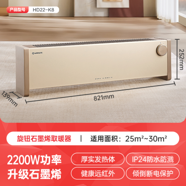 艾美特(AIRMATE)石墨烯踢脚线取暖器家用电暖器速热暖风机居浴两用防水电暖气片大面积供暖节能移动地暖HD22-K8 米色 1片