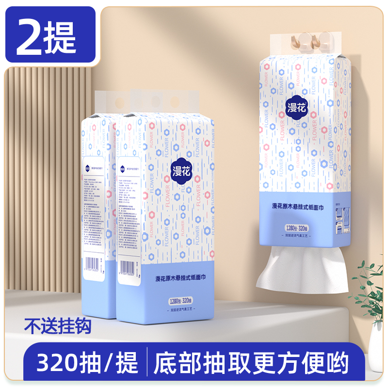 漫花悬挂式抽纸巾家用实惠装厕所卫生纸学生宿舍大包纸面巾餐巾纸 漫花原木挂抽1280张*6提送2挂钩