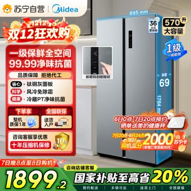 [自营]美的(Midea)570升双开门对开门一级能效节能双变频风冷无霜大容量电冰箱以旧换新BCD-570WKPM(E)