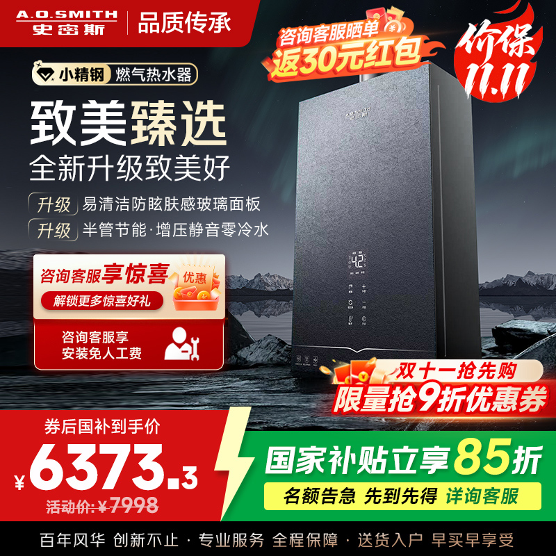 AO史密斯新品小体积13升精钢燃气热水器[小精钢EC5]静音 持久恒温 天然气 JSQ26-EC5
