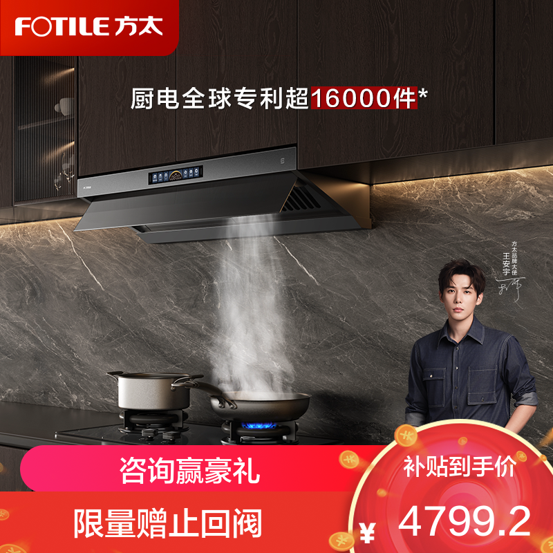 方太(FOTILE)新品欧式吸油烟机家用27大风量挥手智控智感净味顶吸式环隐速吸油烟机F5