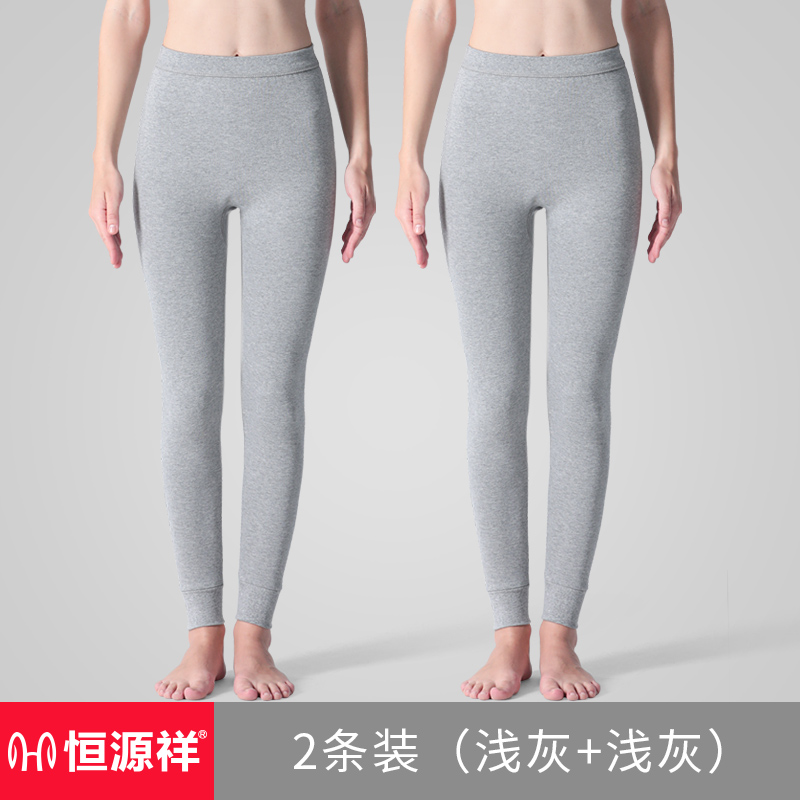 恒源祥纯棉秋裤女士保暖衬裤线裤春秋内穿夏薄款棉裤大码宽松毛裤 165/M 【纯棉抗菌】浅灰+浅灰