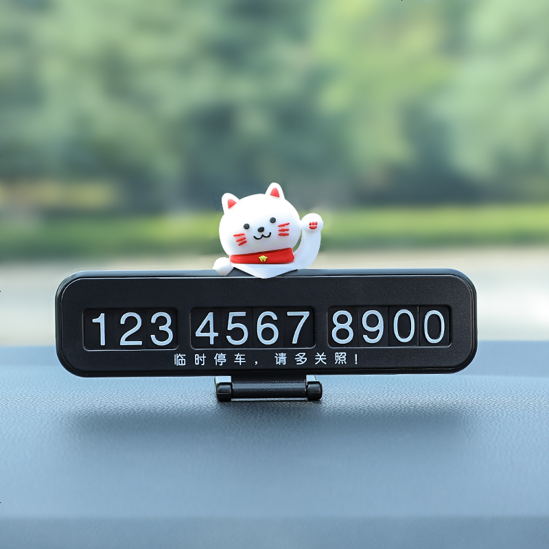 临时停车号码牌挪车电话车载车用汽车停靠卡创意车内装饰用品大全 招财猫+黑牌