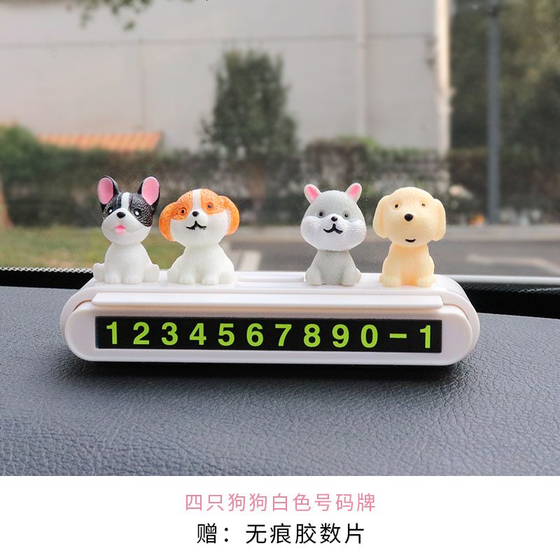 挪车电话号码牌车载临时停车牌车内号码牌创意可爱移车卡车上用品 四只狗白色号码牌