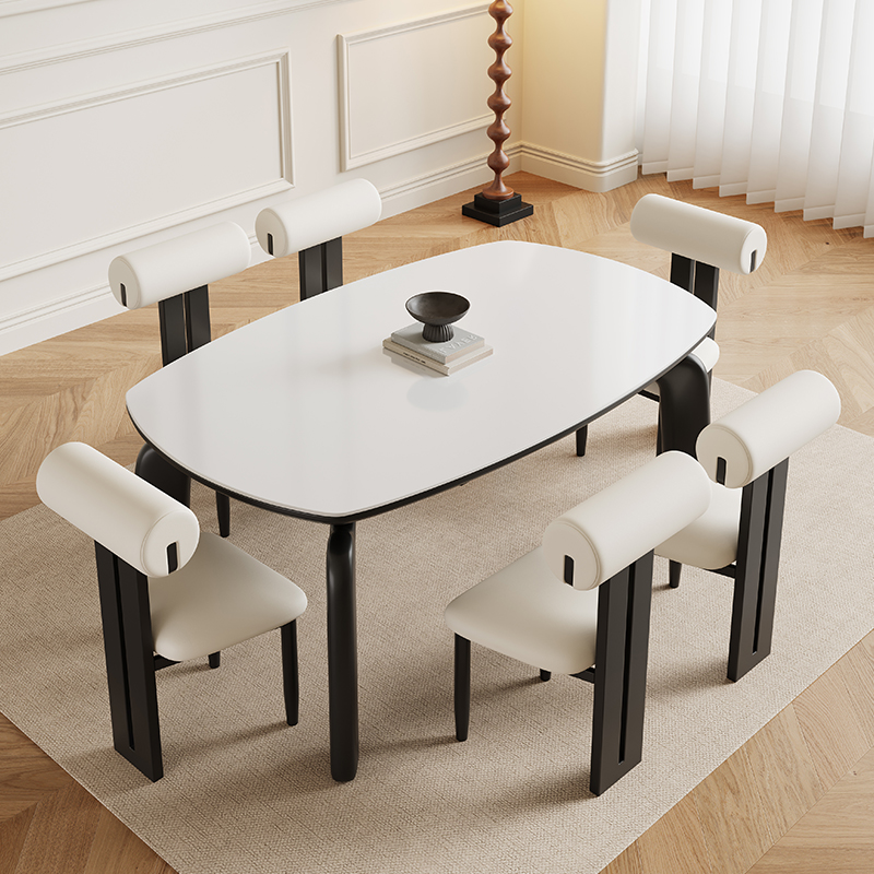 青木川 简约现代实木餐桌椅组合可折叠伸缩客厅餐厅家用岩板餐桌小户型圆桌多功能小清新法式奶油风四人六人吃饭桌子 雪上白+灵芝椅 1.2米长餐桌+六椅