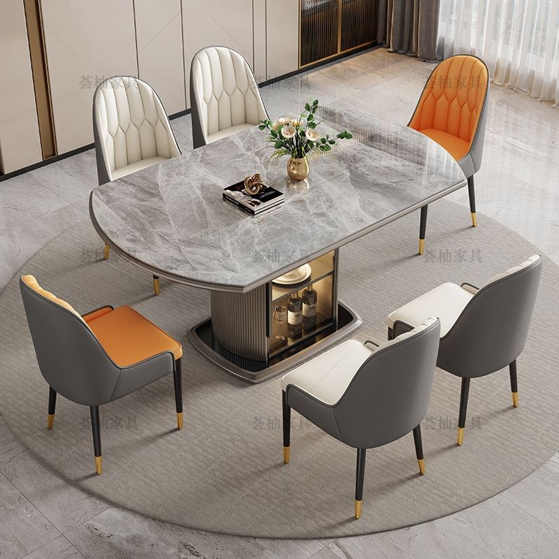 青木川 餐桌餐椅组合套装四人六人岩板餐桌椅组合意式轻奢小户型长方形1.2米1.3米1.6米网红家用吃饭桌子西餐桌简约现代 桌面纹理备注 一桌四椅【1.8米】