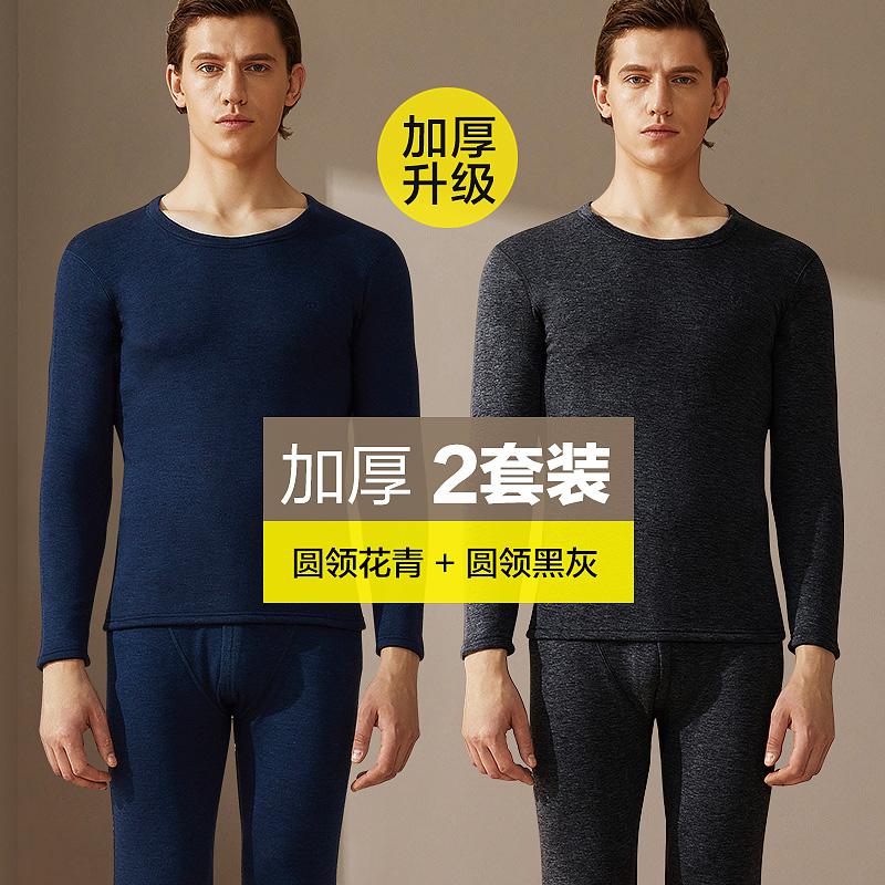 恒源祥保暖内衣男士加厚加绒套装德绒自发热冬季无痕打底秋衣秋裤_75_833 165/M【99天质保德国发热纤维】 加厚升级款-圆领(花青+黑灰)