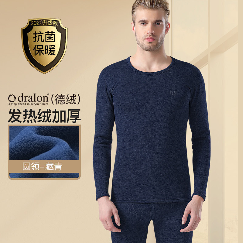 恒源祥男士德绒发热保暖内衣防寒秋裤加厚加绒秋衣裤套装女冬季_883_774 180/2XL【德绒加厚发热保暖】 【男圆领】藏青