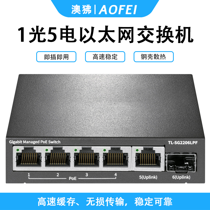 澳狒 网络交换机 以太网交换机1光5电2.5G万兆上行交换机即插即用支持vlan划分端口聚合支持2.5G猫棒