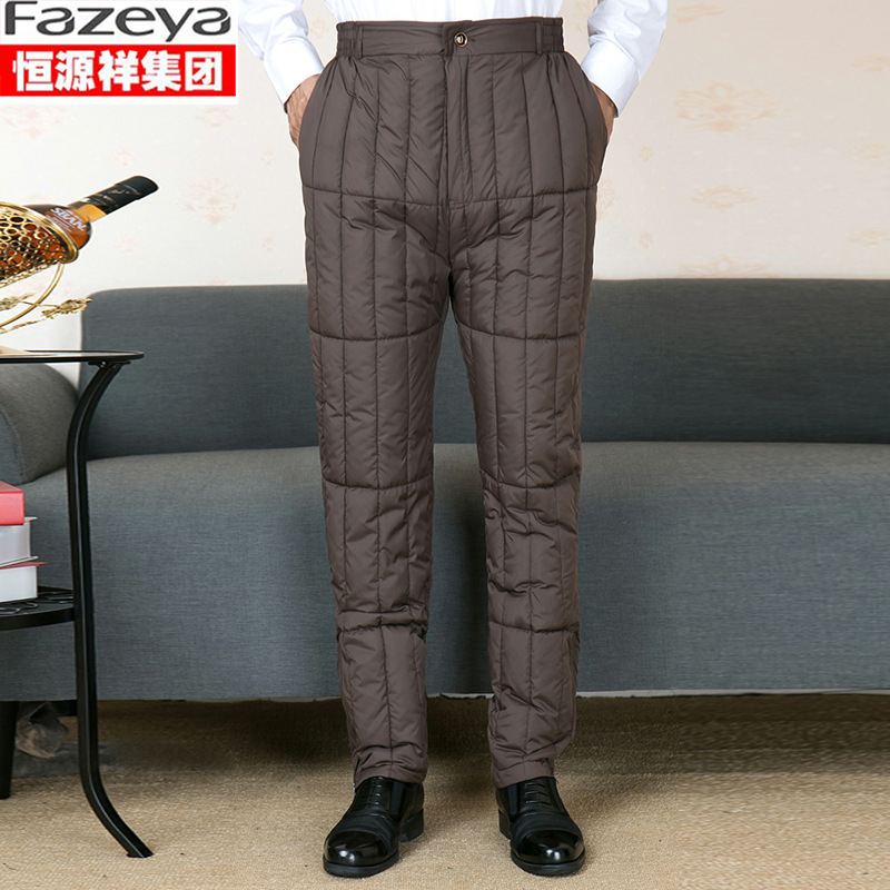 恒源祥男士直筒羽绒裤加厚冬季内外穿保暖修身中老年白鸭绒棉裤男 XL 308黑色