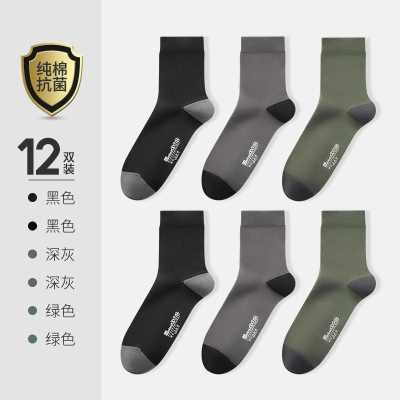 恒源祥袜子男士纯棉四季款中筒袜棉运动短袜秋冬商务袜_408 均码【38-44码】 【纯棉抗菌防臭】4黑4深灰4绿色