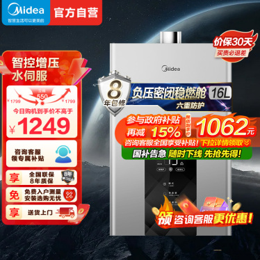 美的(Midea)16升燃气热水器JSQ30-MK6天然气水伺服智控增压恒温ECO节能磁净化健康洗