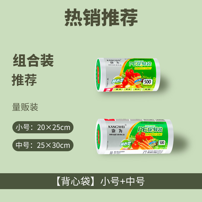冰箱保鲜袋家用食品级经济装背心式一次性厨房包装袋食品袋塑料经 背心款小号+中号