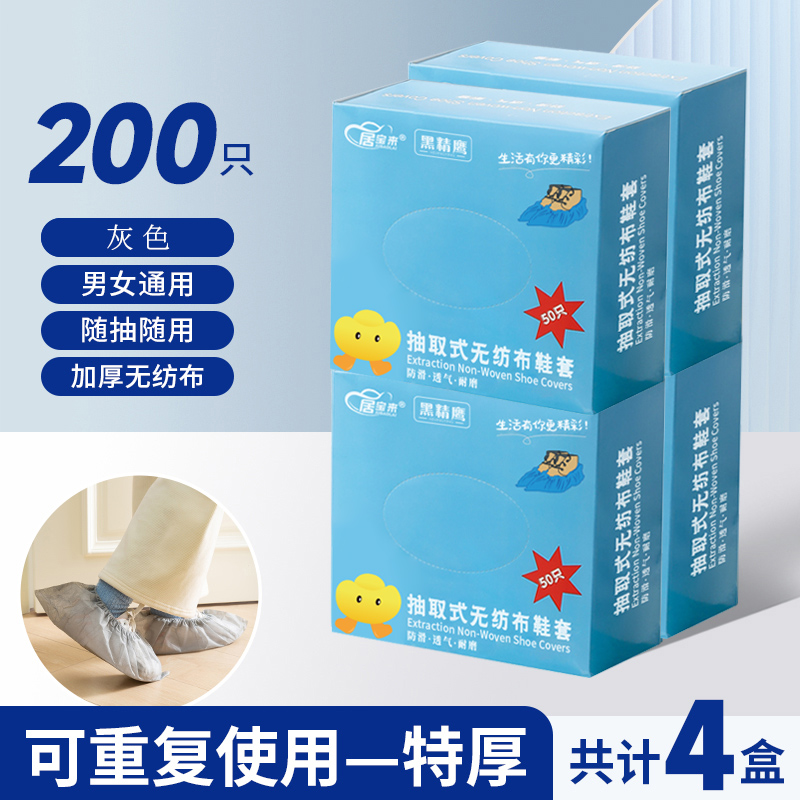 一次性鞋套无纺布家用加厚室内防水耐磨防滑机房学生待客塑料 收纳升级盒装无纺布灰色200抽_透气防滑)