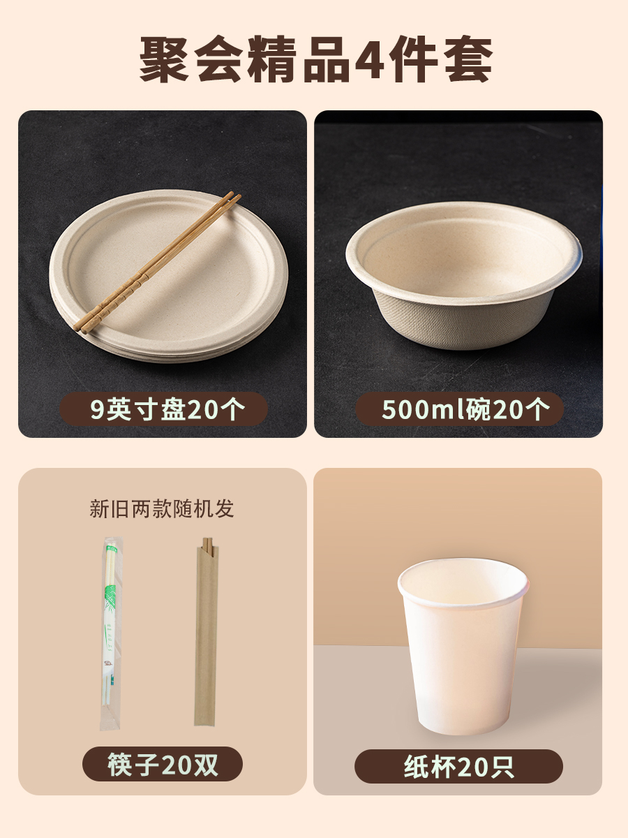 一次性碗筷纸碗野餐加厚餐具盒即弃饭碗食品级家用可降解快餐烧烤 室内火锅共80只一套搞定