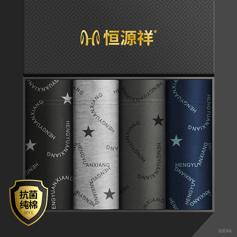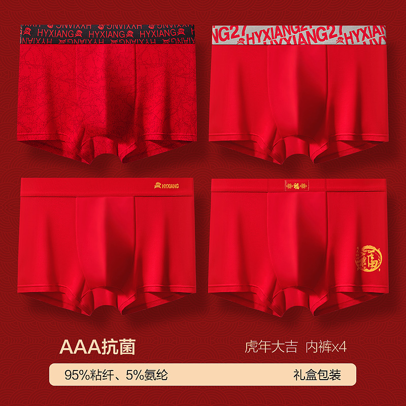 恒源祥本命年内裤男士平角裤纯棉大红色属虎年结婚四角短裤头_22 170/L 【4内裤】大吉大利