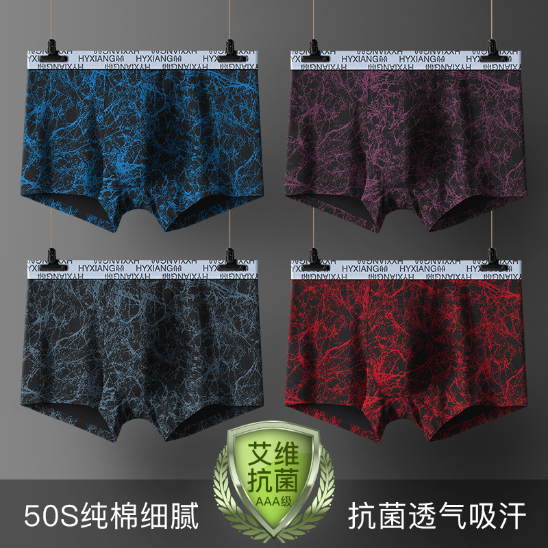 恒源祥男士内裤纯棉平角裤男加大码四角短裤头棉男生宽松夏 XXL 4776黑色+藏青+暗紫+酒红