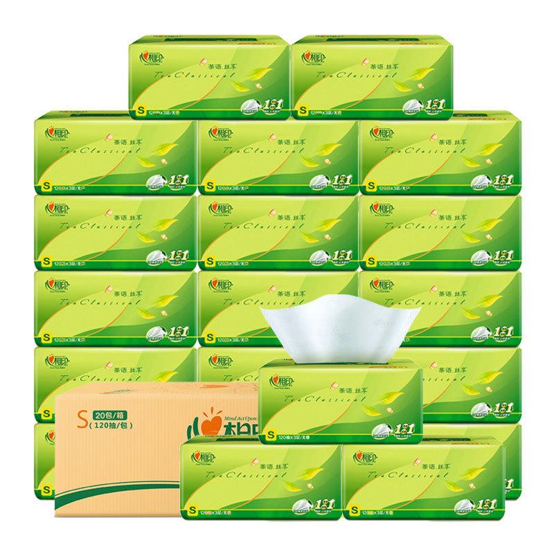 心相印茶语丝享抽纸纸巾整箱卫生纸 3层120抽27包/箱