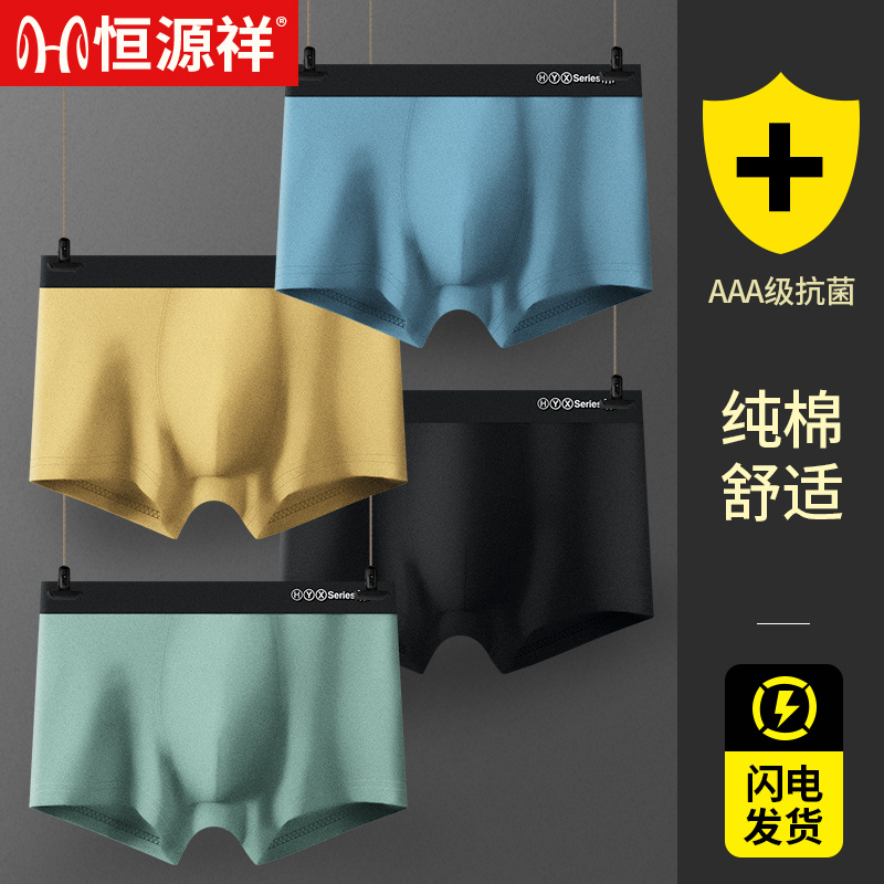 恒源祥男士内裤男平角裤纯棉夏季透气四角短裤头全棉裤衩潮流_709_510 190/4XL AAA级植物抗菌【经典纯色1089C】宝蓝/深紫/黑色/碳灰