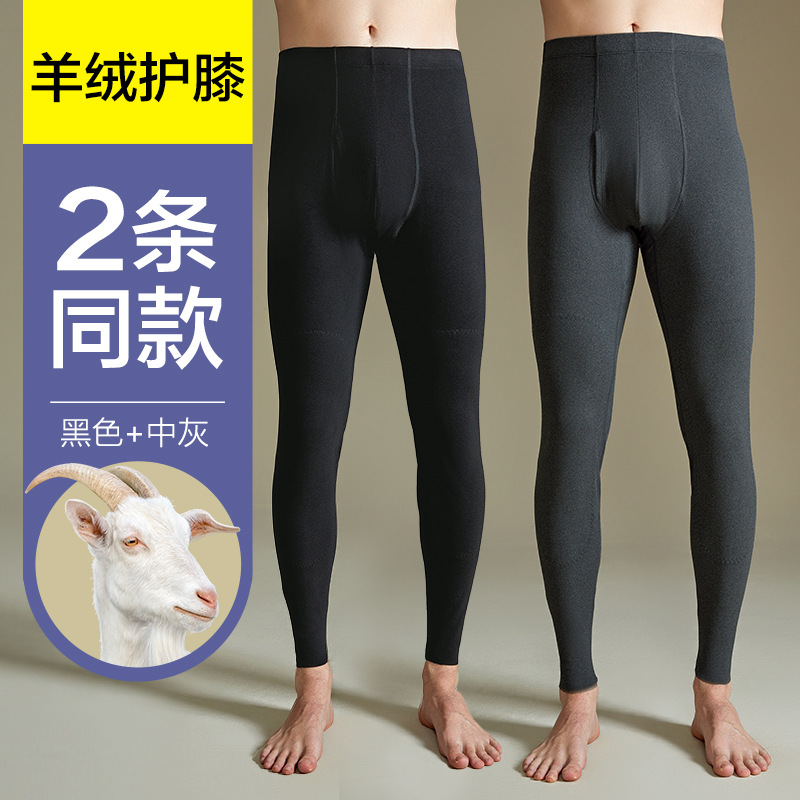 恒源祥保暖裤男士德绒发热秋裤含山羊绒护膝冬季打底衬裤线裤 185(XXXL) 【德绒发热/山羊绒护膝】黑色+中灰